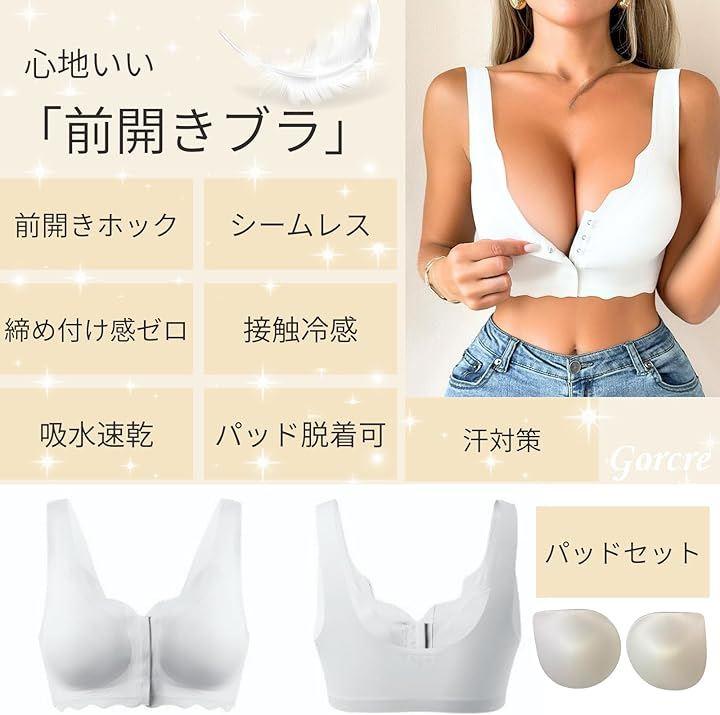 前あき ハーフトップ ブラジャー シームレス カップ付き 取り外し可 ノンワイヤー 接触 冷感 吸水 速乾 快適 レディース