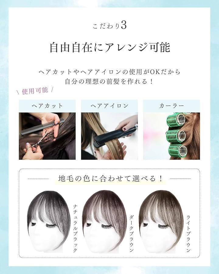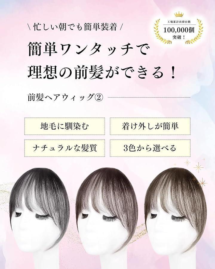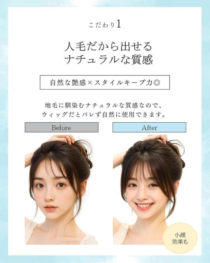 「小顔効果&ボリュームアップ」3D構造のシースルーバング+サイドバングのデザインで、顔の輪郭を自然にカバーし、ナチュラルな小顔効果を実現。
