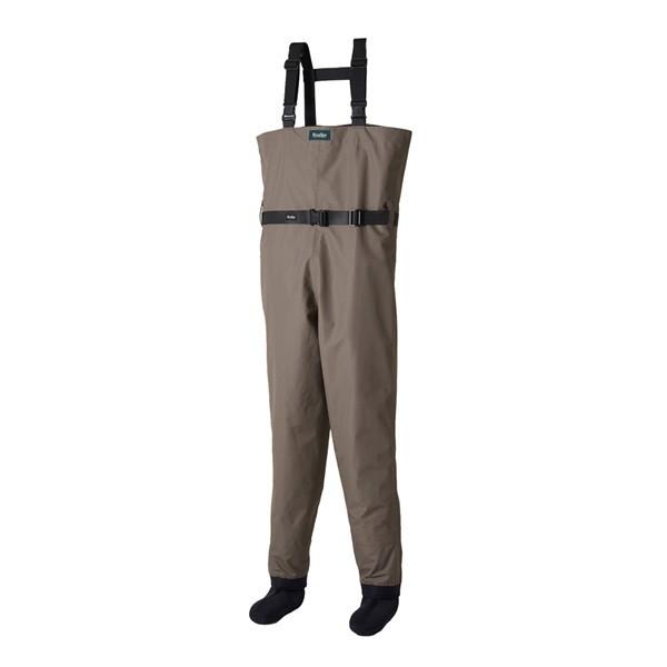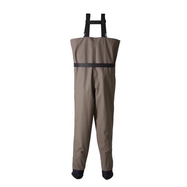 歩きやすさ追求したストッキングモデル本体は国産高密度ポリエステル3レイヤー素材(aquamaxSUPREME透湿防水加工)気温、湿度が高くなる時期や長距離移動時にもウェーダー内部の快適性を保つ透湿素材を使用足場の悪いの渓流や本流でも安定した歩行を可能にするストッキングモデルフィット感と耐久性を考慮した3.5mmクロロプレンソックスダメージの多い踵部は擦れに強いパットで補強本体とソックスドッキング部分は耐久性を考慮した2重構造裾クロロプレンはシューズ内への砂利侵入を軽減するシューレースフック付きグラベルガード仕様。 サイズ:L(総丈141cm、股上53cm、股下88cm、胴回り112cm、太もも72cm、裾囲42cm、対応足サイズ26.5cm、対応身長170-175cm カラー:グレージュ ※実物と色が違って見える場合があります。あらかじめご了承下さい。