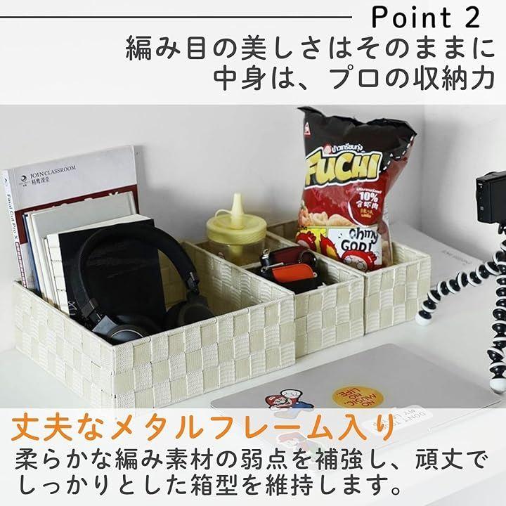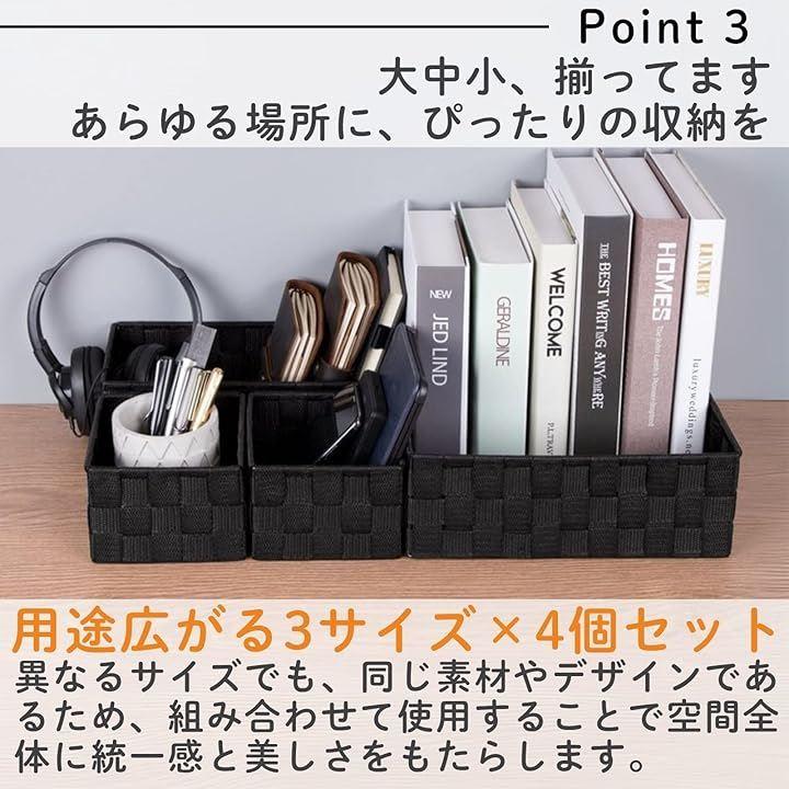 「用途広がる3サイズx4個セット」・Lサイズ:リビング収納や衣類の整理に・Mサイズ:洗面所やデスク周りに・Sサイズx2個:引き出し内や玄関の小物収納に最適。