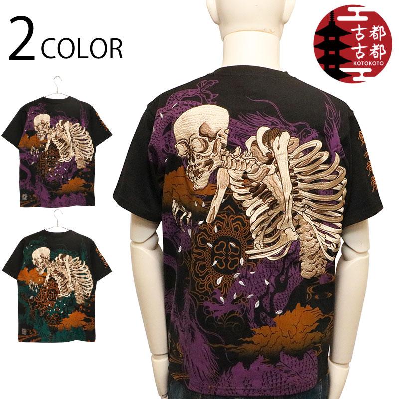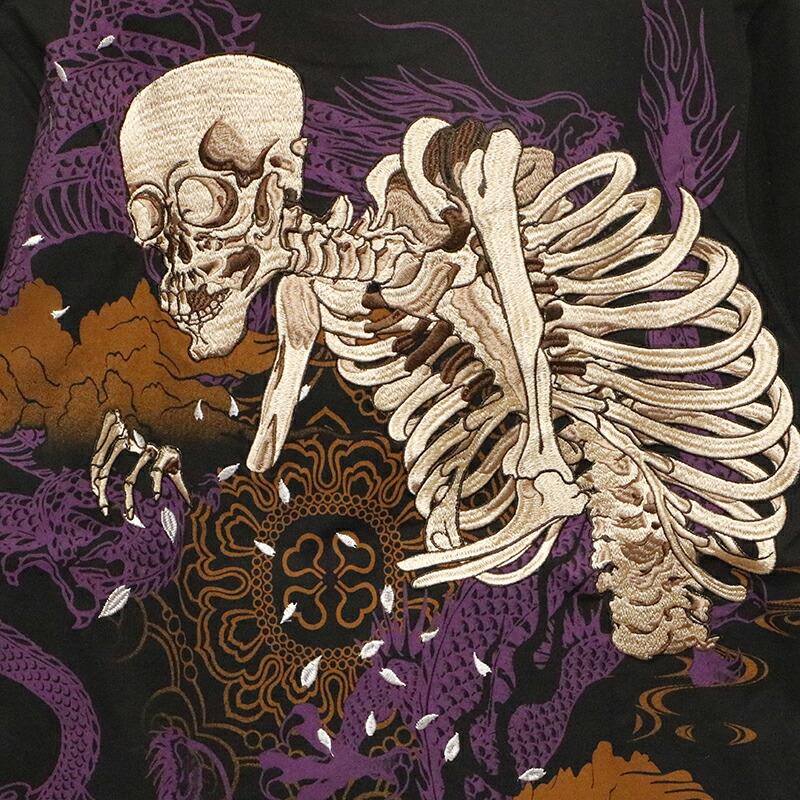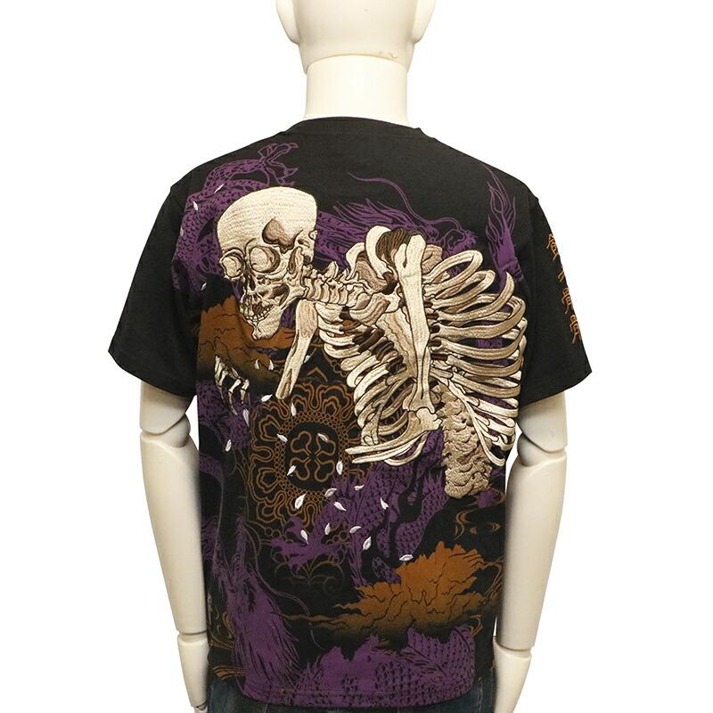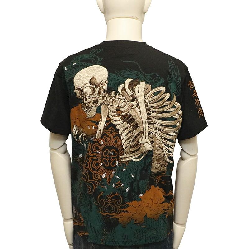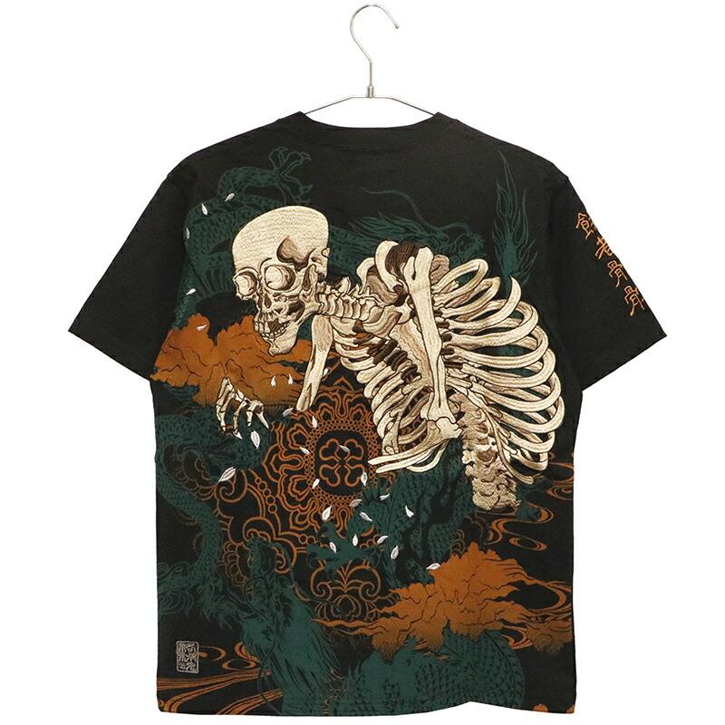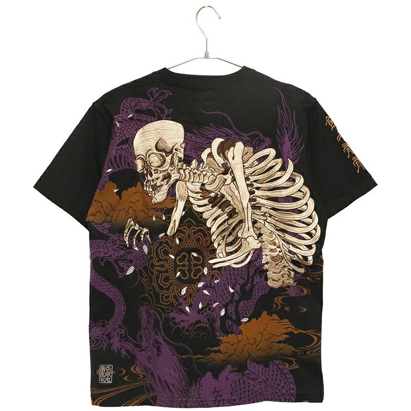 【商品名】がしゃ髑髏 柄 刺繍 和柄 半袖Tシャツ