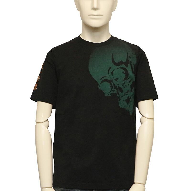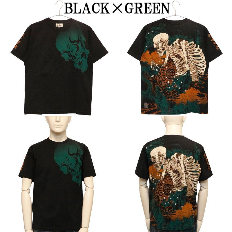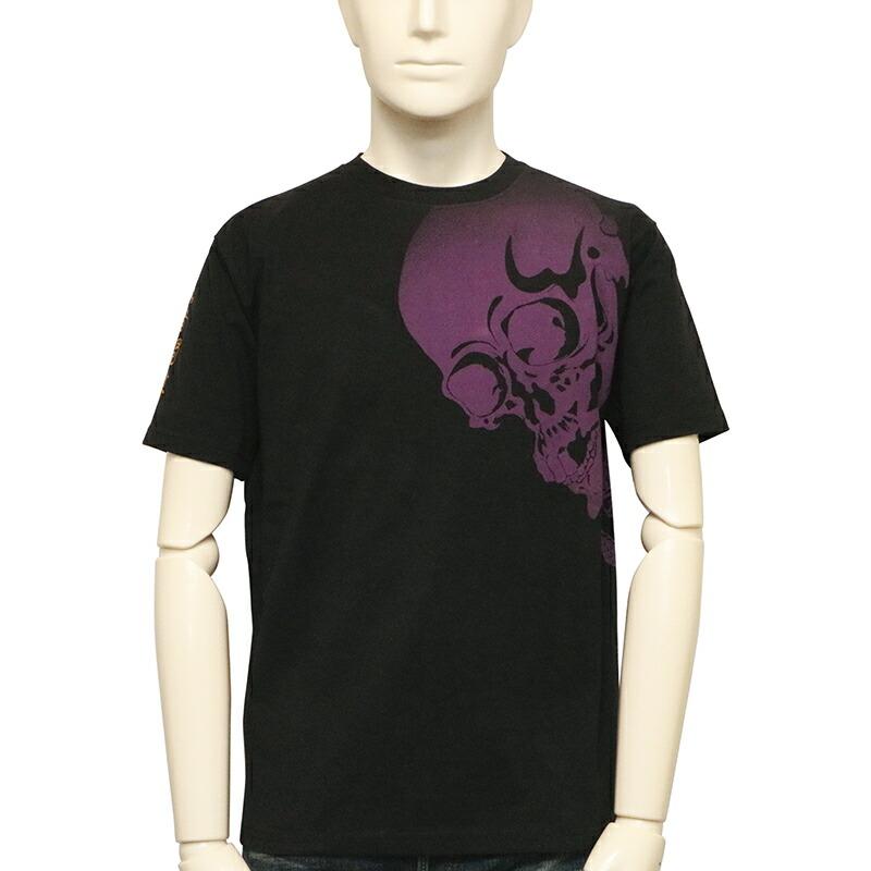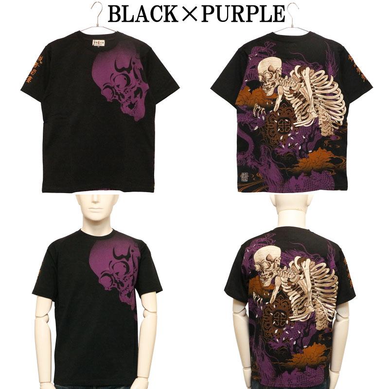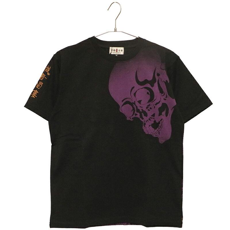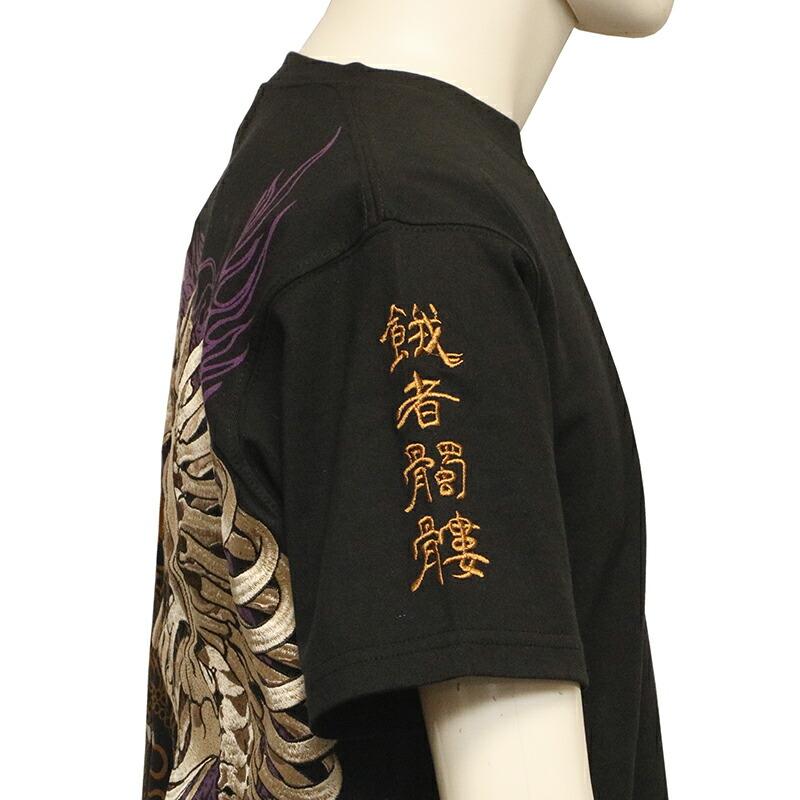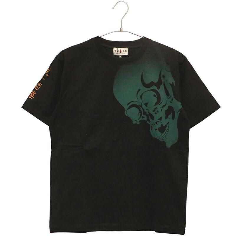 【商品名】がしゃ髑髏 柄 刺繍 和柄 半袖Tシャツ