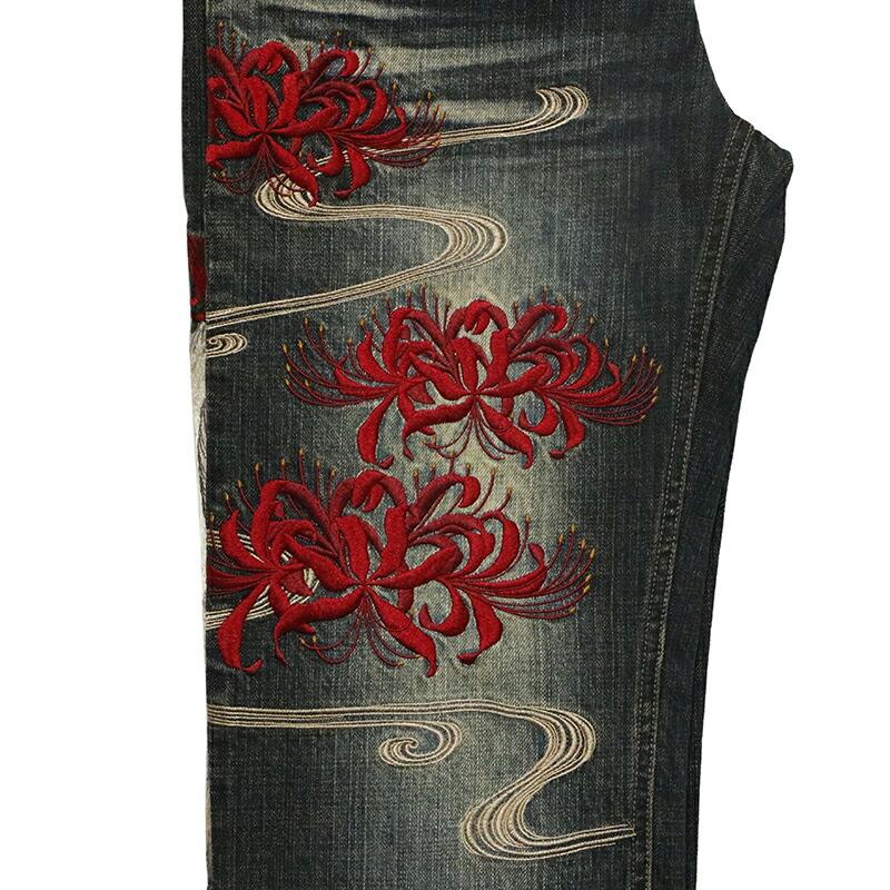 九尾の狐 柄 刺繍 和柄 デニムパンツ