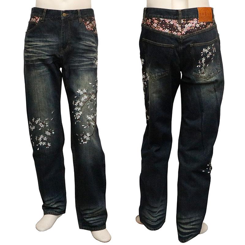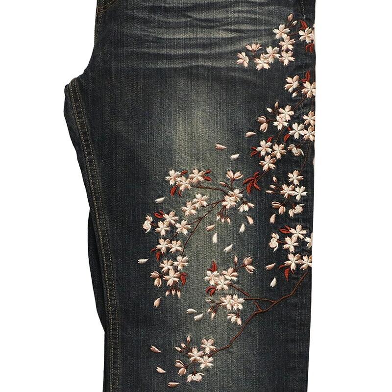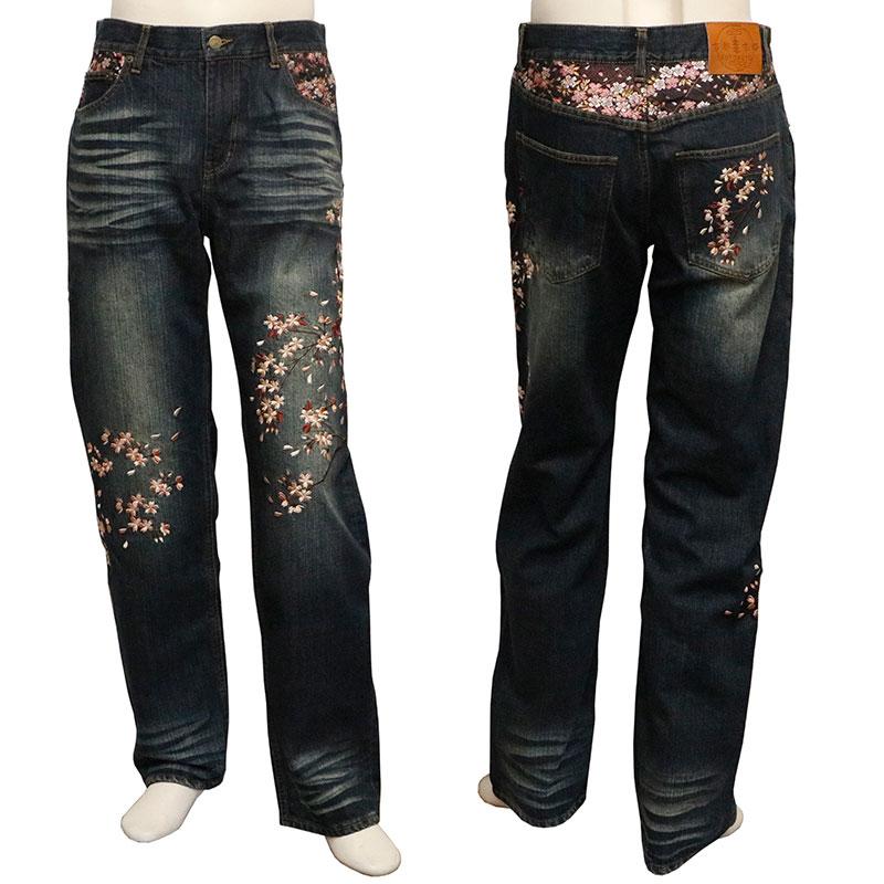 枝垂れ桜 柄 刺繍 和柄 デニムパンツ