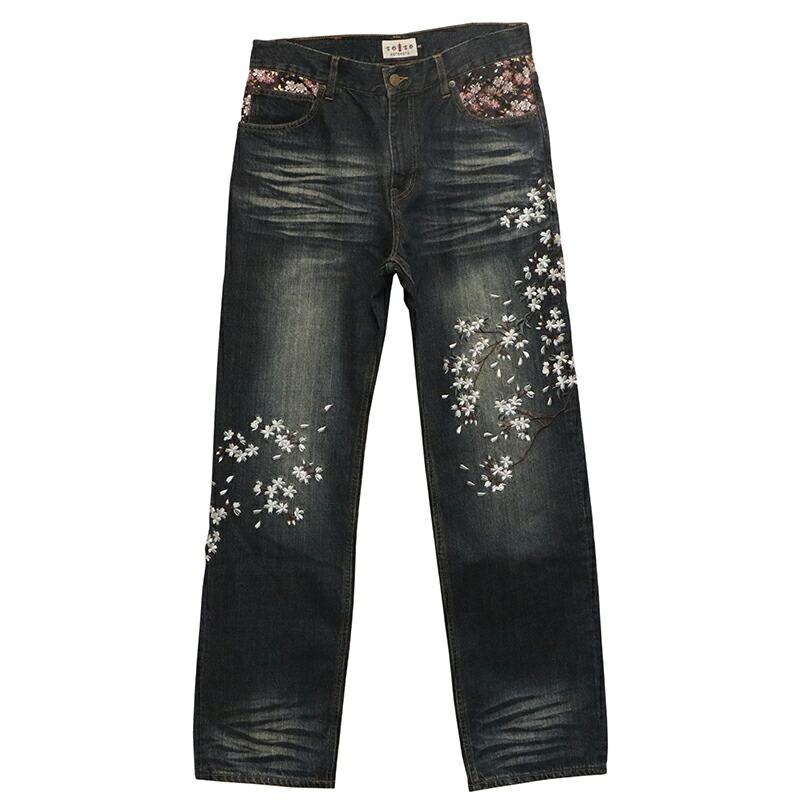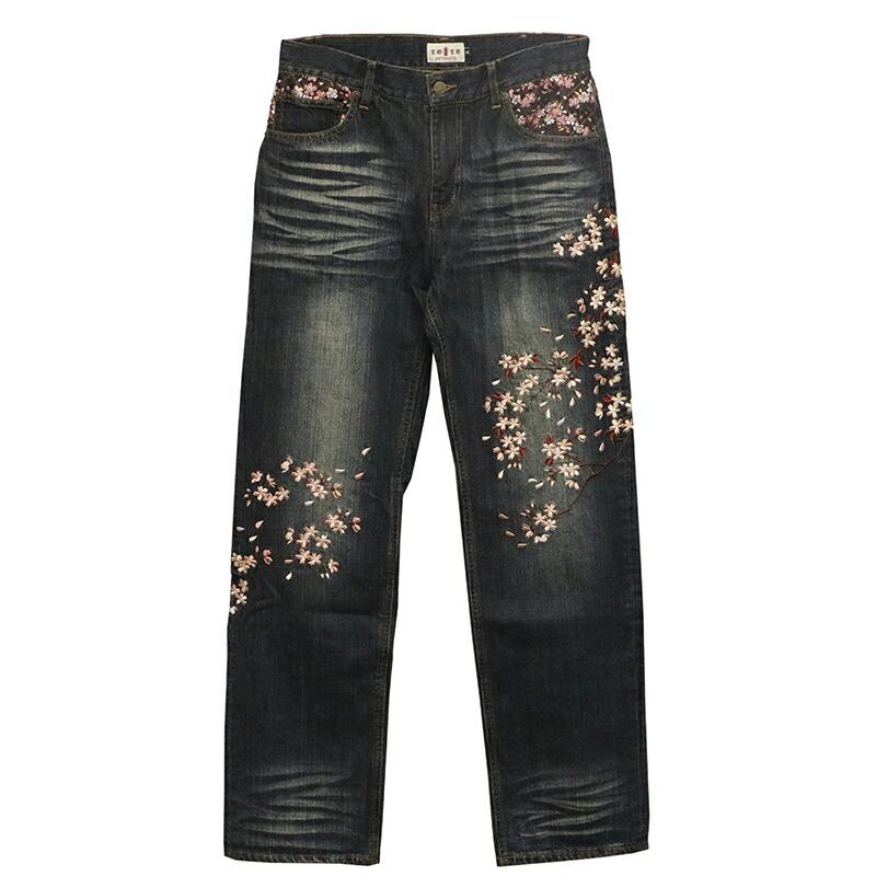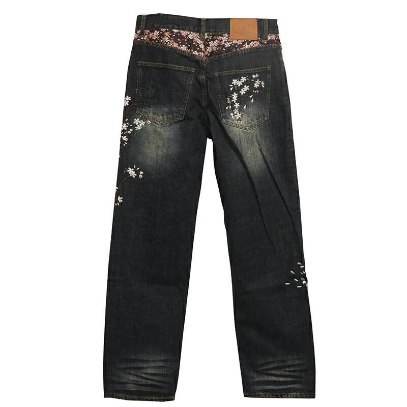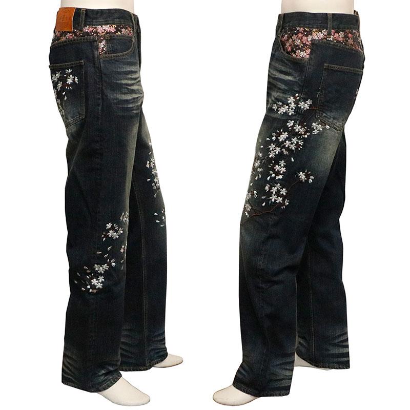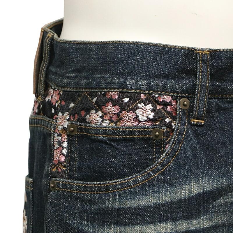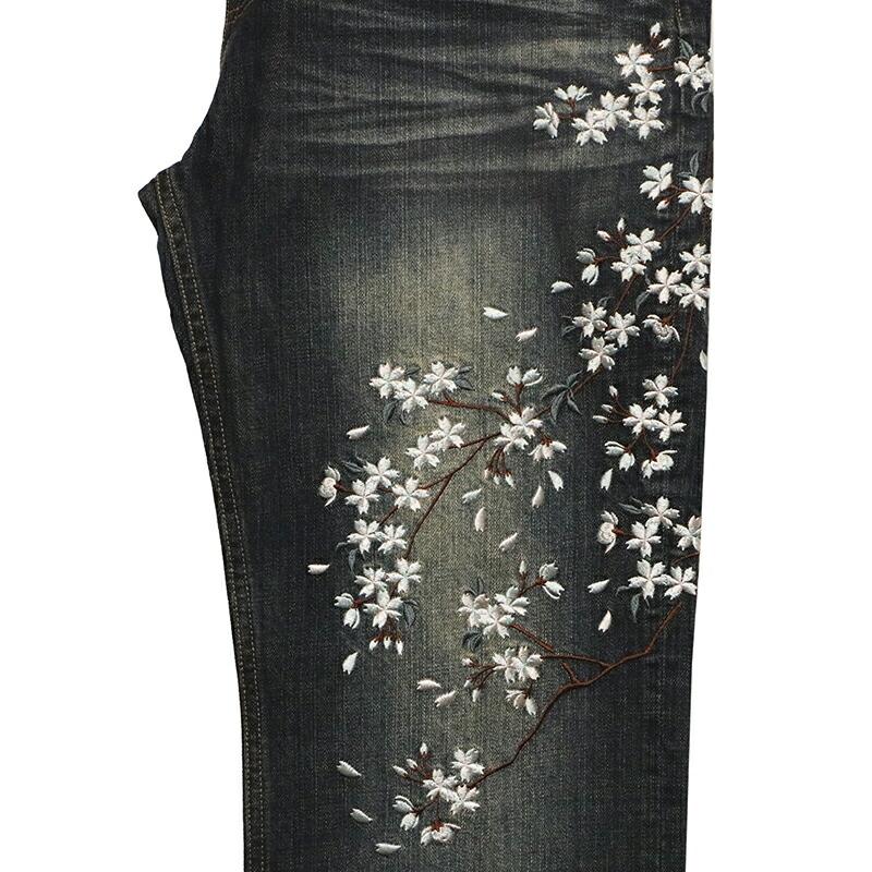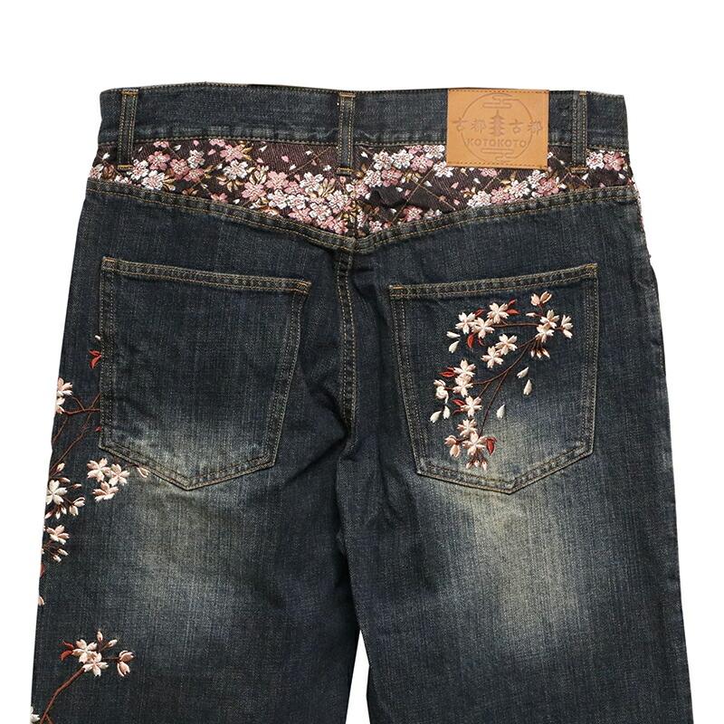 和柄の定番柄「桜」を総刺繍で落とし込んだデニムパンツ。