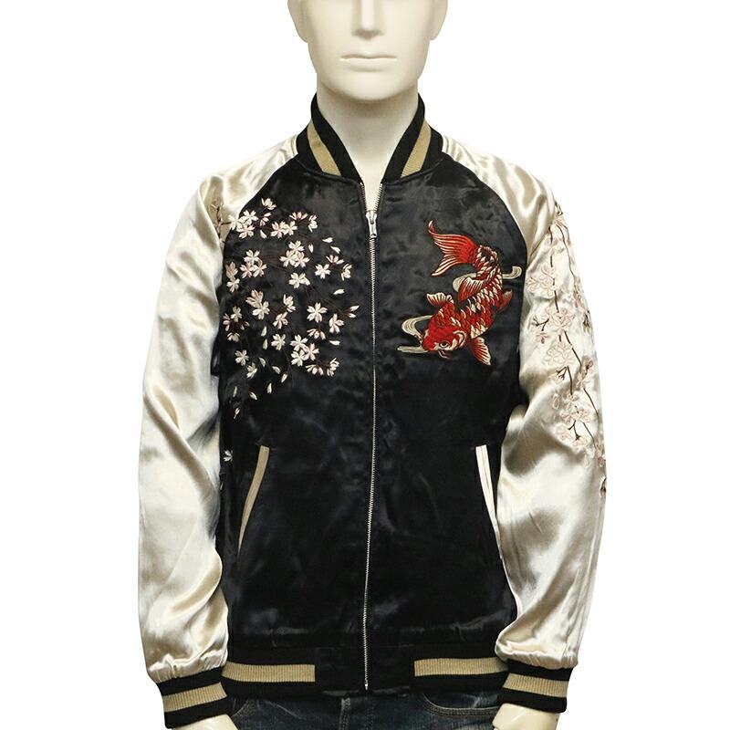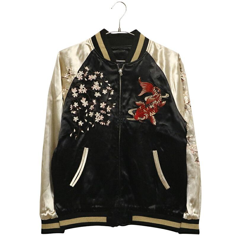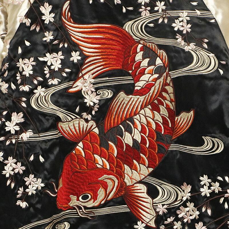錦鯉 × 桜 柄 刺繍 リバ−シブル スカジャン