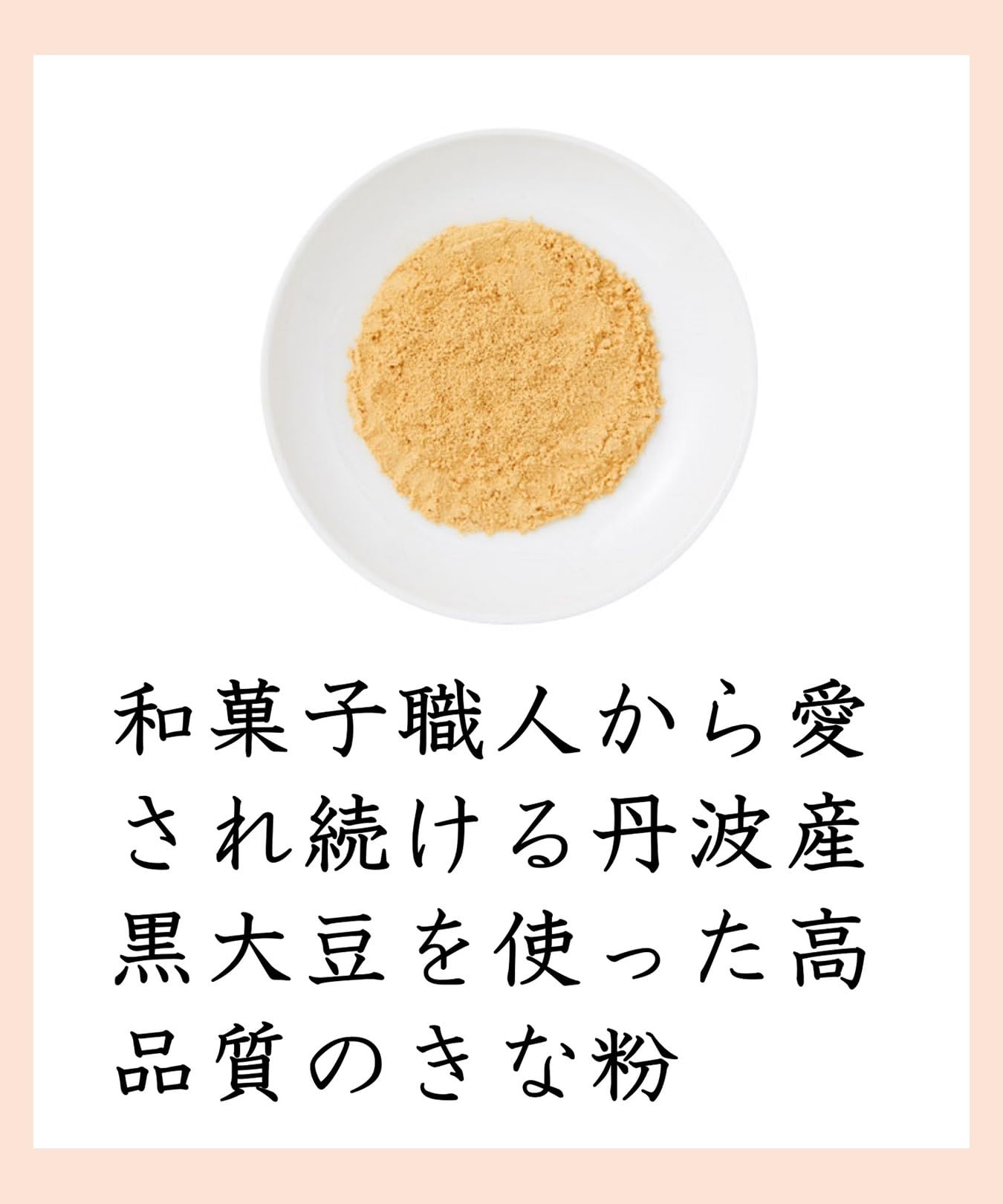 職人の声から生まれた「黒豆きな粉」です。国産丹波種の黒大豆を職人が厳選し、製造しております。和菓子職人ご用達の上質な丹波黒豆きな粉。原材料:黒大豆(国産)内容量;100g × 5袋【重要】メーカーによる商品リニューアルに伴いパッケージ(内容量も含む)変更が行われた場合、新パッケージでお届け致します事ご了承願います。