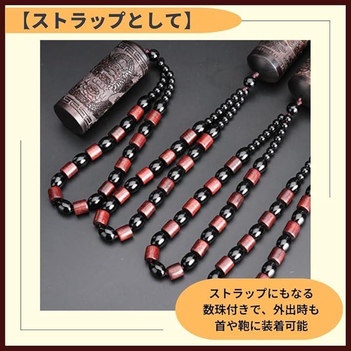 「ストラップとして」ストラップにもなる数珠付きで、外出時も首や鞄に装着可能