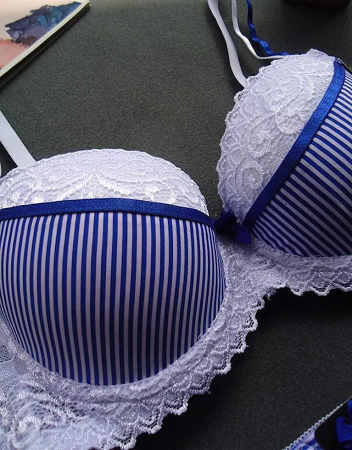 レースの高級感にボーダー柄が可愛らしさもプラス。