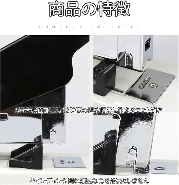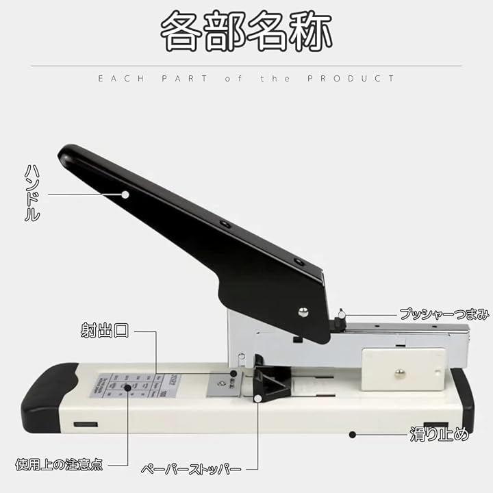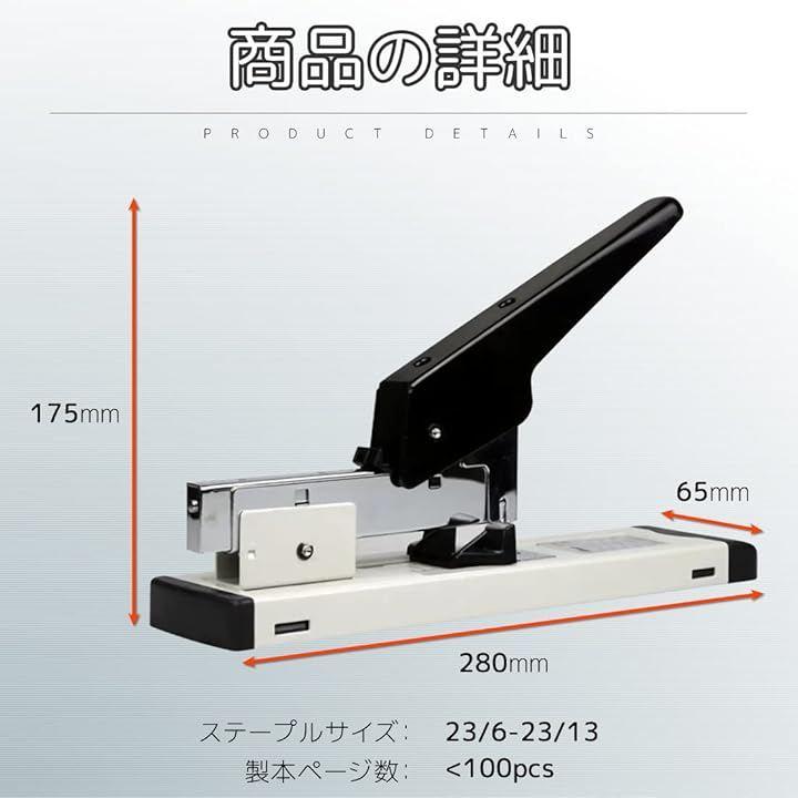 「安定した土台とプロ仕様のつくり」大型ホッチキスは、ハンドルを下に押して簡単に紙を綴じることが可能です