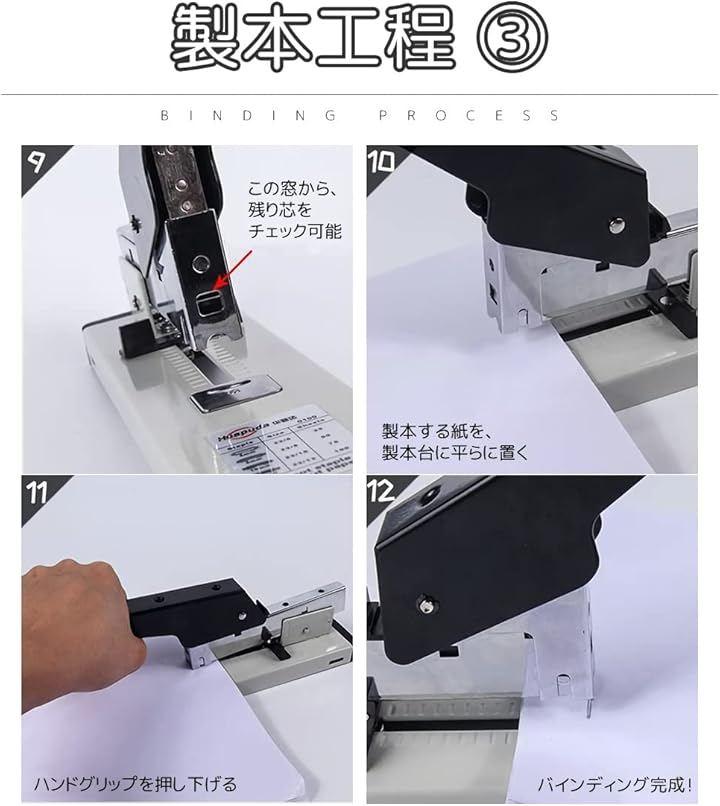 通常のホッチキスとは違い、多くの紙を綴じることができますので冊子やパンフレットの作成にピッタリな商品です。
