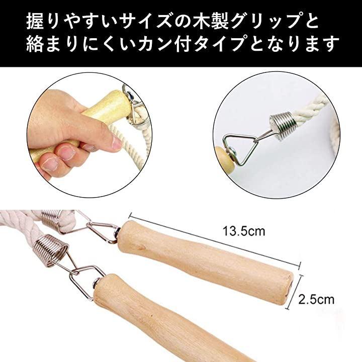 木柄のグリップで回りやすいシンプルな縄跳びとなります。