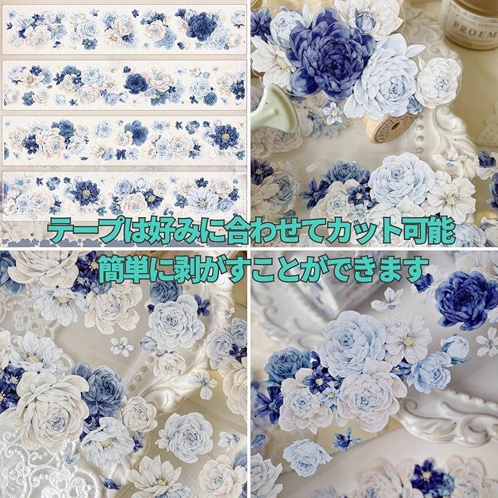 「素材」PET:光沢のある白インク剥離紙「サイズ」(薔薇、ブルー)1巻55mmx5m、1ループ約100cm (牡丹、ピンク)1巻60mmx6m、1ループ約150cm