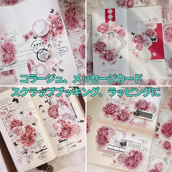 華やかで繊細な大輪の薔薇と牡丹の花柄マスキングテープです。