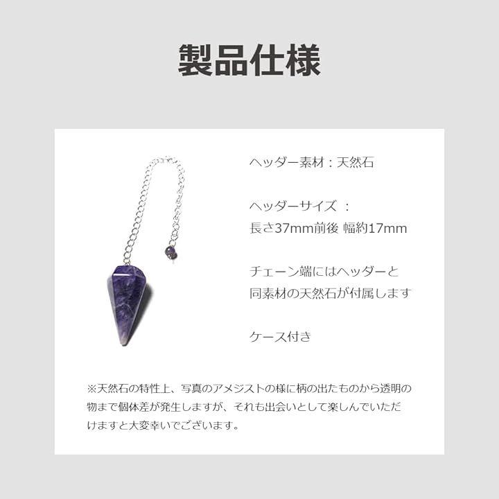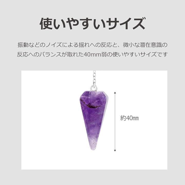 その反応を高める最適な素材と言われる天然石を使用し、振動などのノイズによる揺れへの反応と、微小な潜在意識の反応へのバランスを取った40mm弱のヘッダーをもつペンデュラムです。
