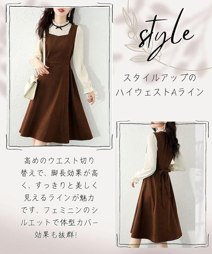 レイヤード風コーデュロイワンピース 胸元と袖のレース感とフリルの立ち襟りと蝶結びデザインが上品でエレガントな雰囲気を出してくれる大人かわいい姫系ワンピ ウェストリボンで後ろ姿もしっかりかわいい。 高めのウエスト切り替えで、脚長効果が高く、すっきりと美しく見えるラインが魅力です、フェミニンのシルエットでシーズンムードを高めてくれるコーデュロイ素材が秋冬にぴったりの一枚。