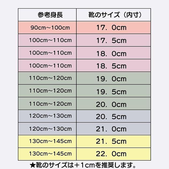 靴のサイズは内径での表記のため+1センチゆとりを持ってお選びください。