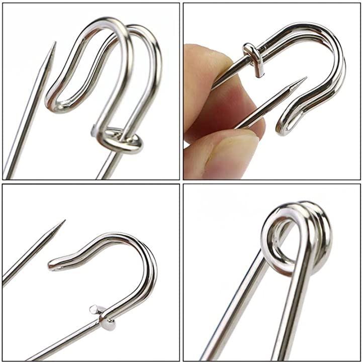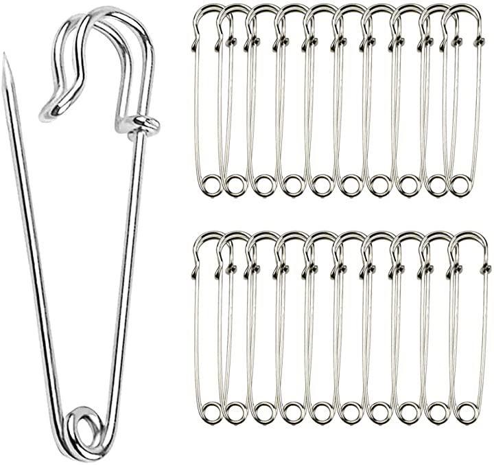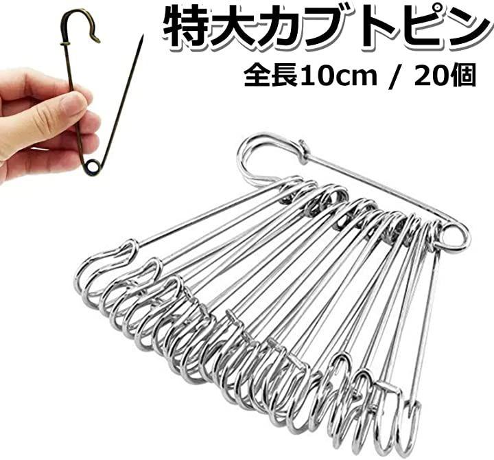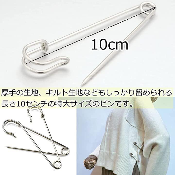 シンプルなデザインの大きい安全ピン、長さ10cm、20個セットです。