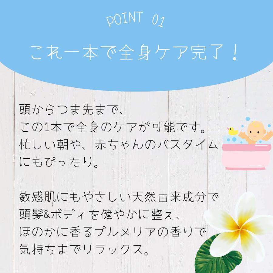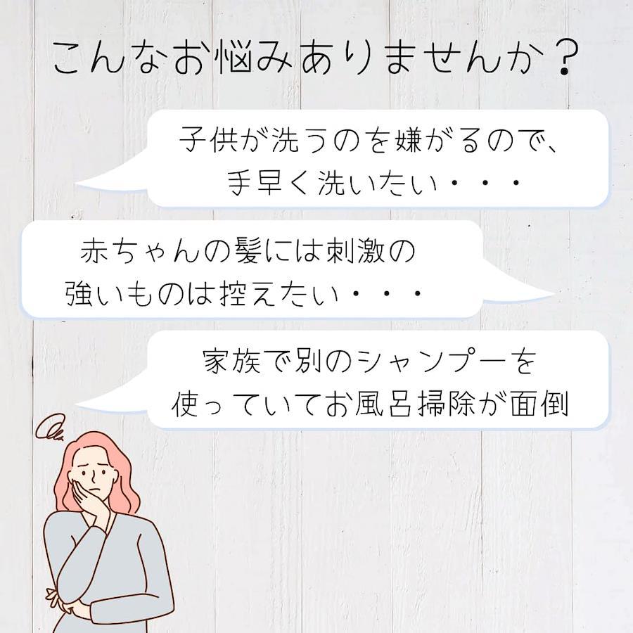 ?アミノ酸やヤシ油由来の洗浄成分で作られた髪と素肌にやさしい弱酸性の全身用シャンプーです♪ 髪にやさしい、みんなにやさしいハッピーバスタイム