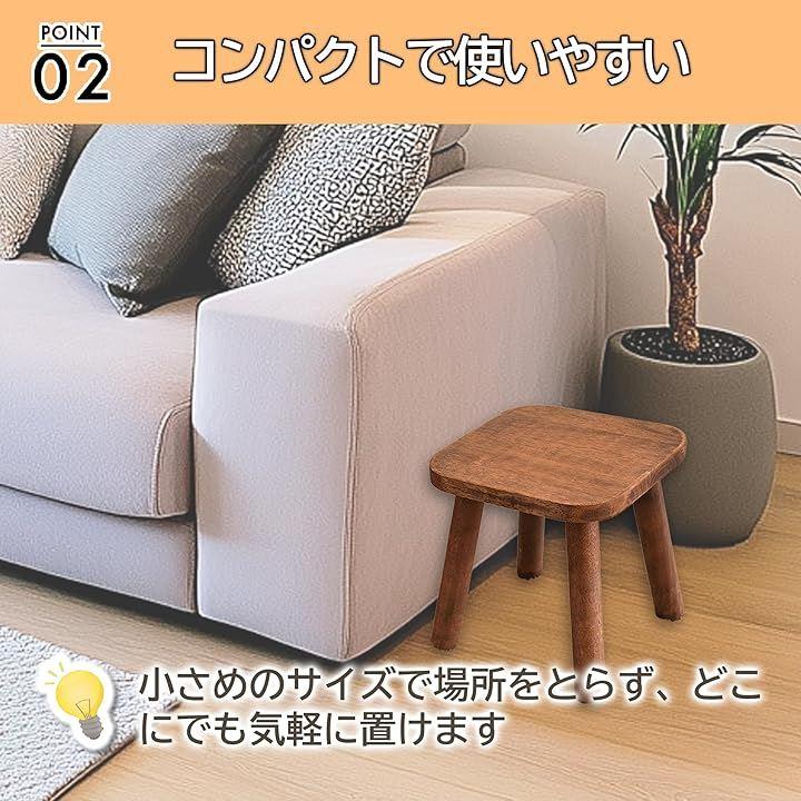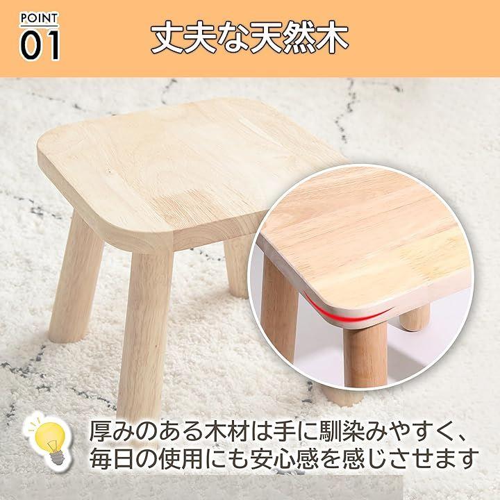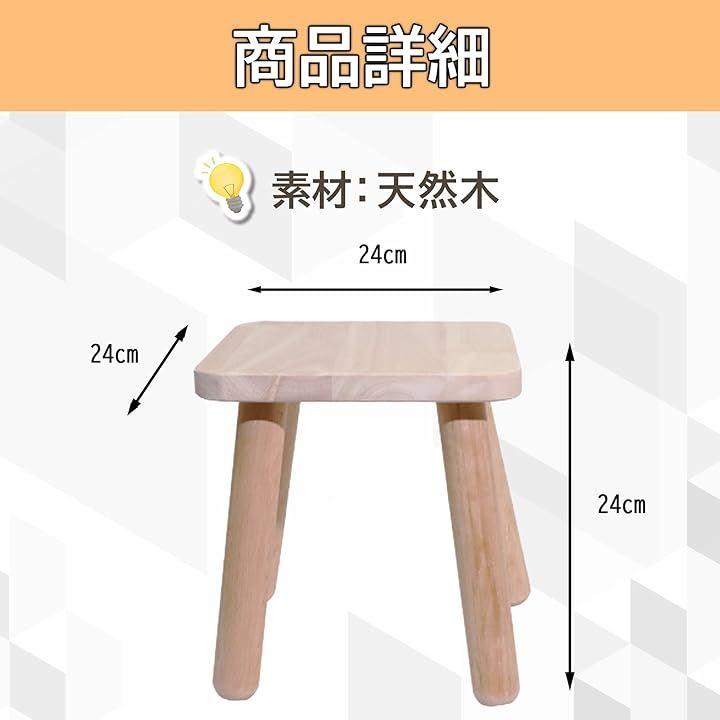 「商品詳細」サイズは24x24x24cmの小型の木製スツールで、持ち運びもしやすいコンパクトな設計です。