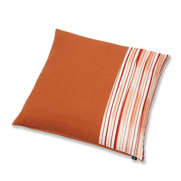 表側はぼかし縞と同系色の無地を、裏側は同系色の無地で作りました。江戸時代、庶民の間で持て囃された縞模様。江戸っ子が様々な縞模様を創りだし「粋」を楽しんだそうです。太細ある矢鱈縞を少しよろけさせたこの縞模様に柔らかなぼかしを加え、デジタルプリントで繊細に表現しました。現代の「粋」をポイントに空間に彩りを添えます。濃淡が美しい【あかね色】と【ぶどう色】をご用意しました。生地は異なる太さの糸を使い平織りとなな子織りを組み合わせて織られたブッチャー生地で、しっかり柔らかな手触りが心地よく、織り糸の表情が感じられる素材です。【カバーサイズ】 横45㎝×縦45㎝【生地素材】 綿(ブッチャー)100%この商品はカバー(ファスナー加工)のみです。中わたは別途ご購入ください。またカートの購入可能数より多い数をご希望の場合はご相談ください。