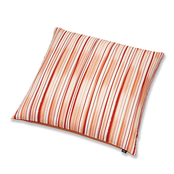 江戸時代、庶民の間で持て囃された縞模様。江戸っ子が様々な縞模様を創りだし「粋」を楽しんだそうです。太細ある矢鱈縞を少しよろけさせたこの縞模様に柔らかなぼかしを加え、デジタルプリントで繊細に表現しました。現代の「粋」として空間に彩りを添えます。表側は濃淡が美しい【あかね色】と【ぶどう色】裏は、同系色の無地をご用意しました。生地は異なる太さの糸を使い平織りとなな子織りを組み合わせて織られたブッチャー生地、しっかり柔らかな手触りで心地よく、織り糸の表情が感じられる素材です。【カバーサイズ】 横55㎝×縦59㎝【生地素材】 綿(ブッチャー)100%この商品はカバー(ファスナー加工)のみです。中わたは別途ご購入ください。またカートの購入可能数より多い数をご希望の場合はご相談ください。