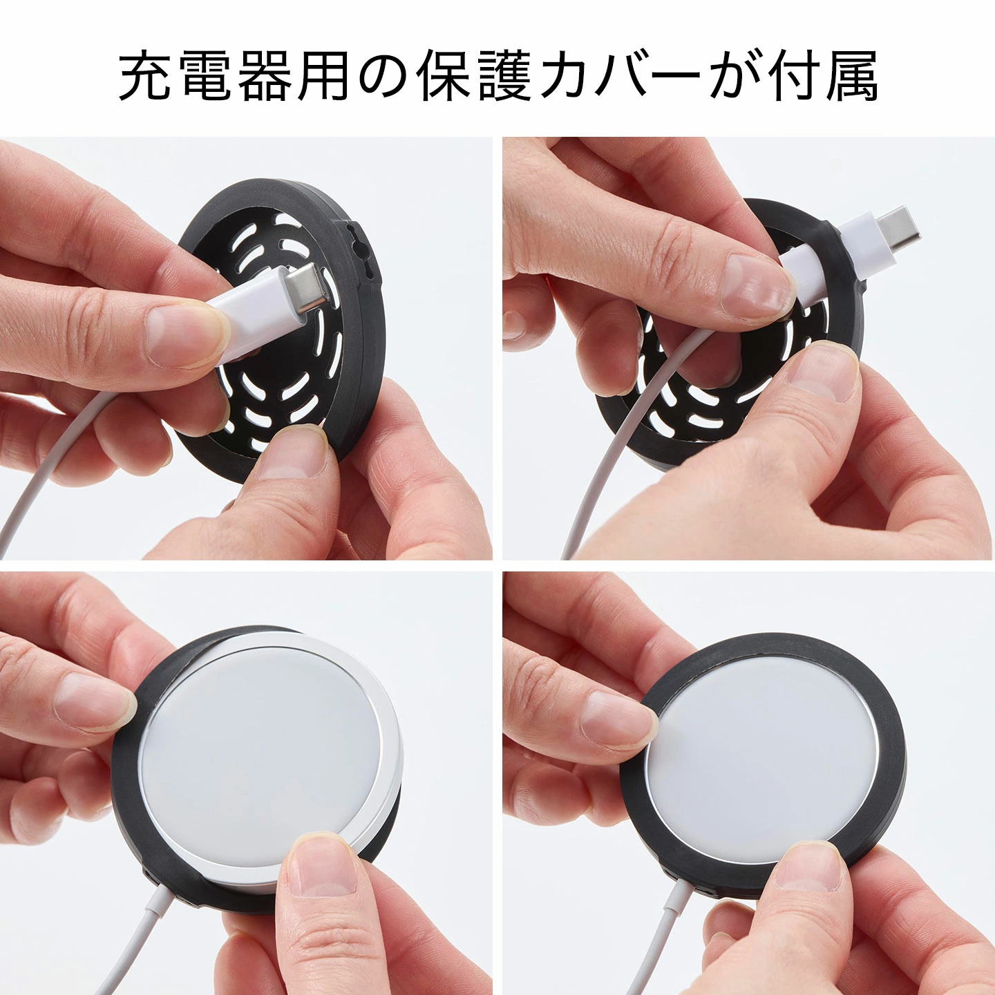 ■対応サイズApple純正MagSafe充電器(25W型番A2580・A3250:厚さ4.37mm・外径55.5mm 15W型番A2140:厚さ5.3mm・外径55.9mm)厚さ4.37-5.3mm・外径55.5-55.9mmのワイヤレス充電器※ワイヤレス充電器のサイズや形状によっては取り付けできない場合があります。