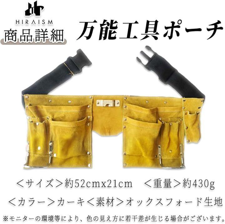 「商品内容」工具ポーチ <サイズ>約52cmx21cm <重量>約430g <カラー>カーキ <素材>オックスフォード生地 *モニターの環境等により、色の見え方に若干差が生じる場合がございます。