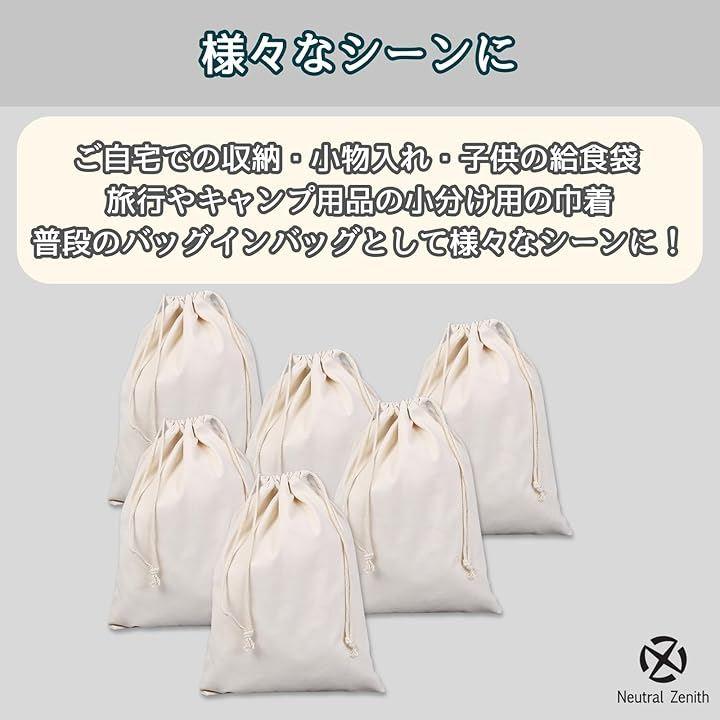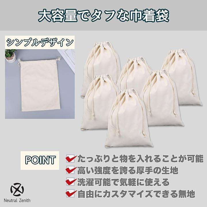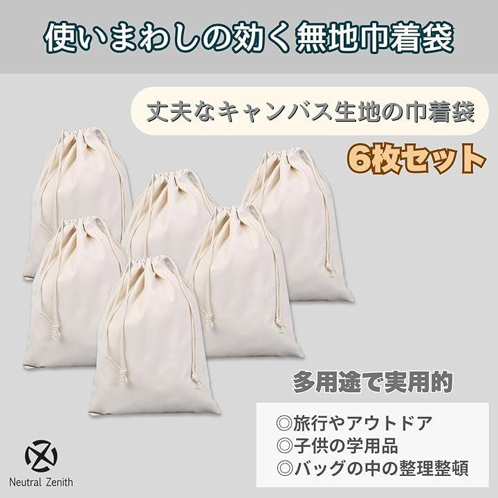 「使いまわしの効く無地巾着袋」天然コットンのキャンバス巾着袋は、さまざまな場面での収納問題に役立ちます。