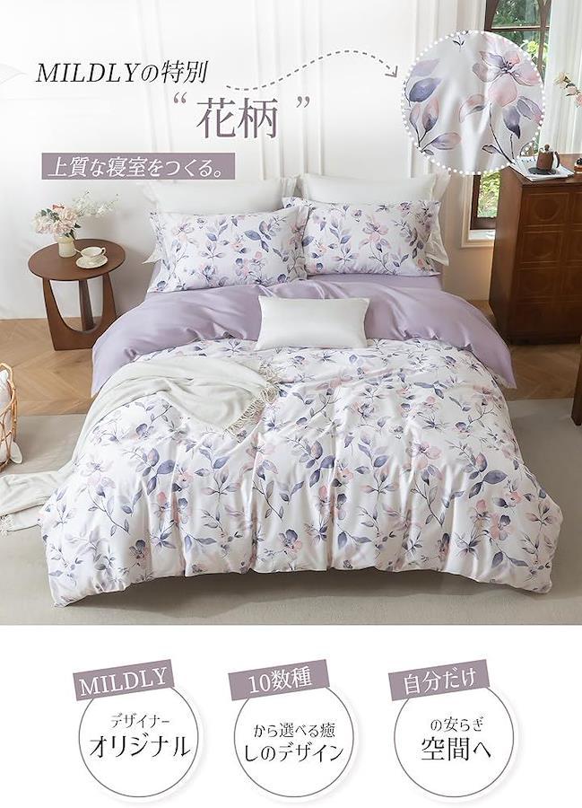 「デザイン性で変わる寝室空間」 MILDLYデザイナーチーム開発のオリジナル花柄が、寝室をベッドカバー おしゃれな空間に進化させます。