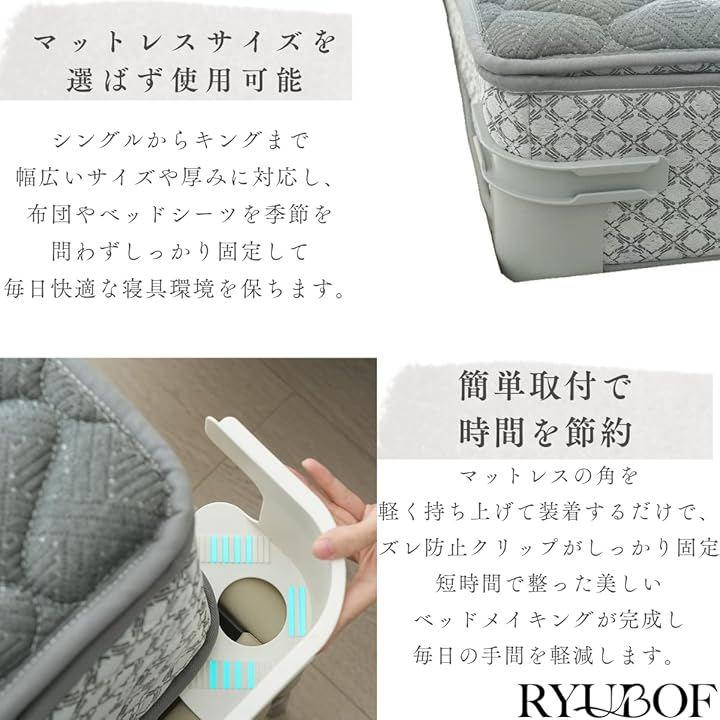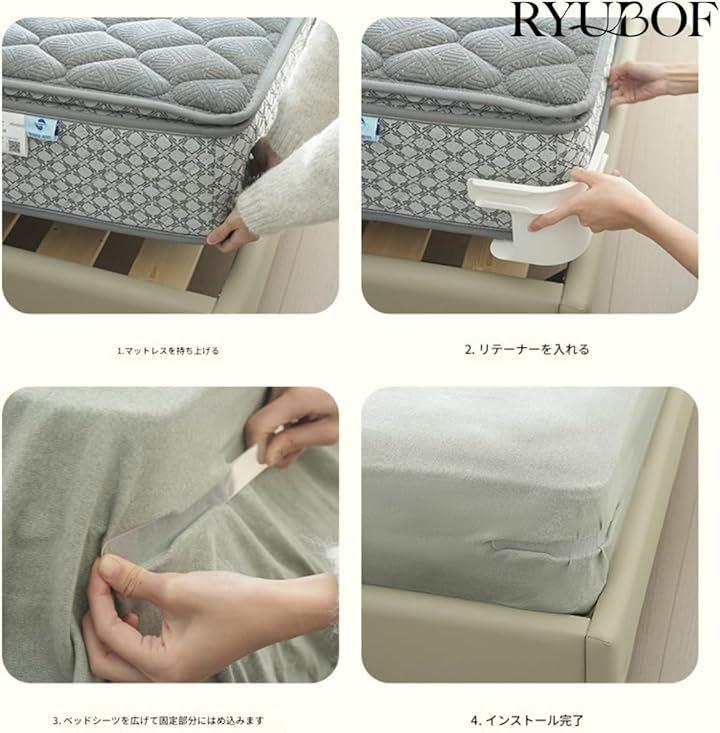 「簡単取付で時間を節約」マットレスの角を軽く持ち上げて装着するだけで、ズレ防止クリップがしっかり固定、短時間で整った美しいベッドメイキングが完成し毎日の手間を軽減します。