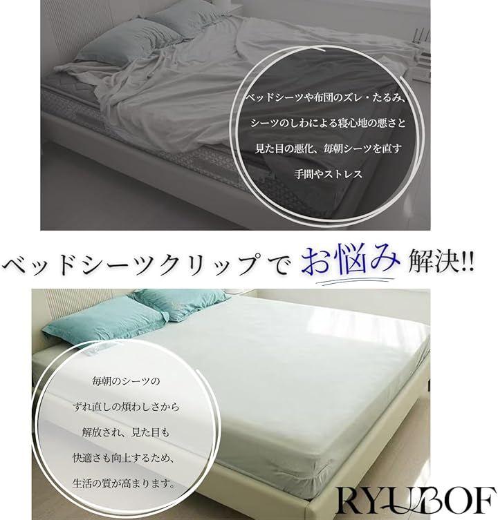 しわやたるみが気になるベッドシーツを、ピンと張ったフラットな状態にキープできる布団&ベッドシーツクリップ4個セットです。