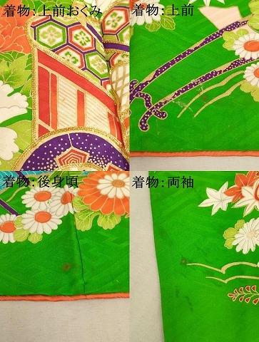 着物【正絹】の状態は接写画像のように上前おくみ・上前・後身頃・両袖に汚れがございますが