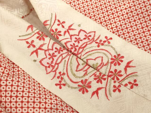 長襦袢【化繊・半衿刺繍】の状態は特に目立ったシミ汚れなどもなく大変良い状態です。