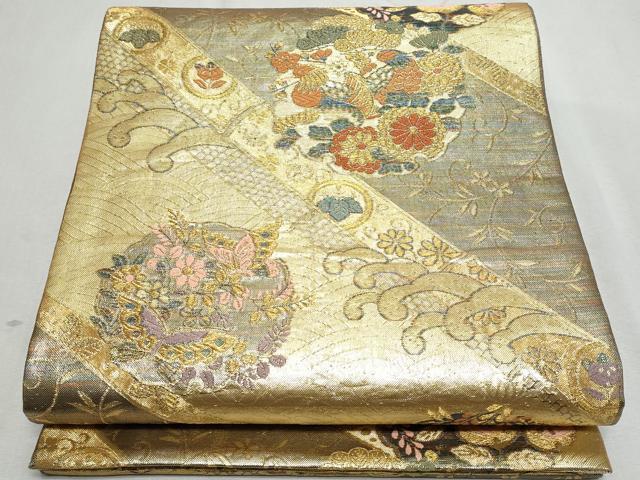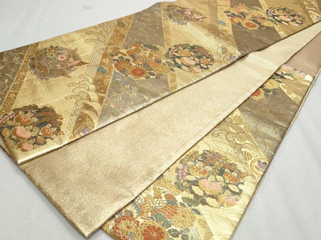 平和屋着物◎六通柄袋帯 唐織 雪輪鴛鴦舞蝶花文 金糸 正絹 逸品 CAAZ4794fb