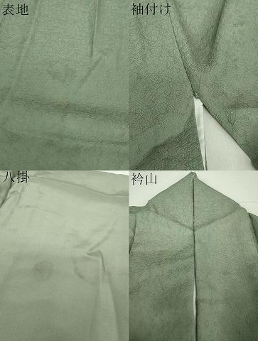 状態は接写画像のように表地所々、八掛に薄い汚れ、袖付けに若干の糸解け、衿山に薄い汚れがございます。