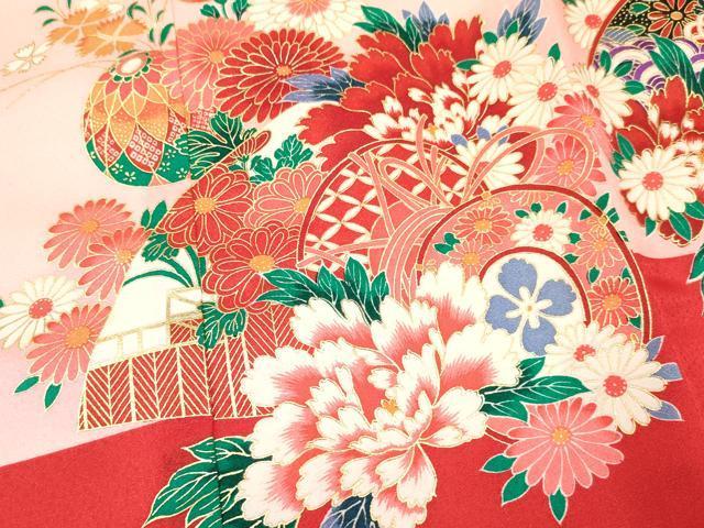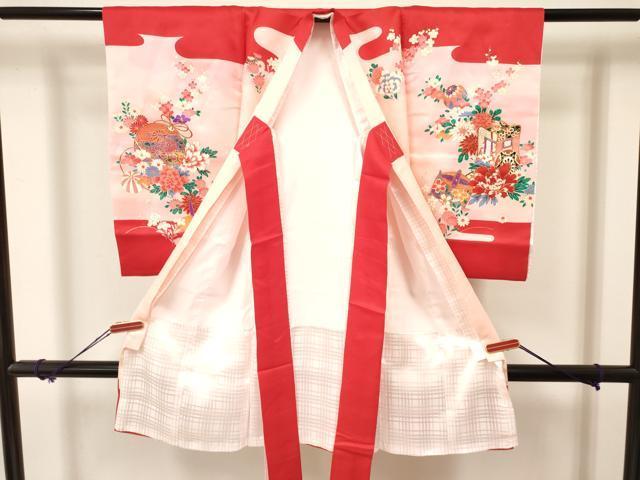 平和屋着物お宮参り 女の子 祝着 産着 初着 のしめ 糸車 折り鶴 鞠鼓花文 暈し染め 金彩 逸品 DAAW2856ma