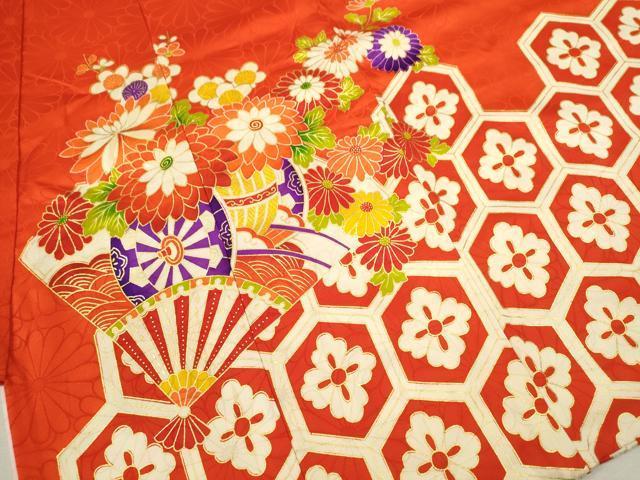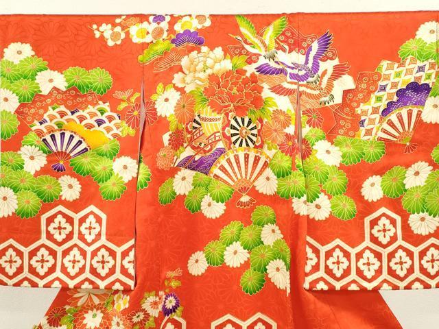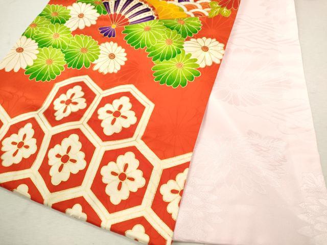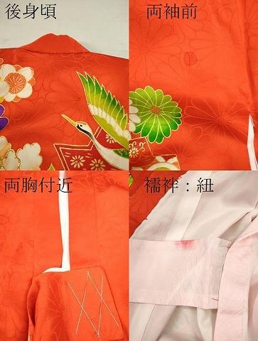 産着【表地:正絹・胴裏:化繊、襦袢:化繊】の状態は接写画像のように後身頃・両袖前・襦袢と祝着の紐に薄い汚れがございますが