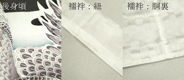 産着【表地:正絹・胴裏:化繊、襦袢:化繊・五つ紋】の状態は接写画像のように後身頃・襦袢の紐と胴裏に薄い汚れがございますが
