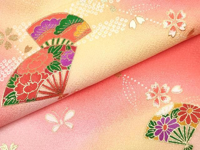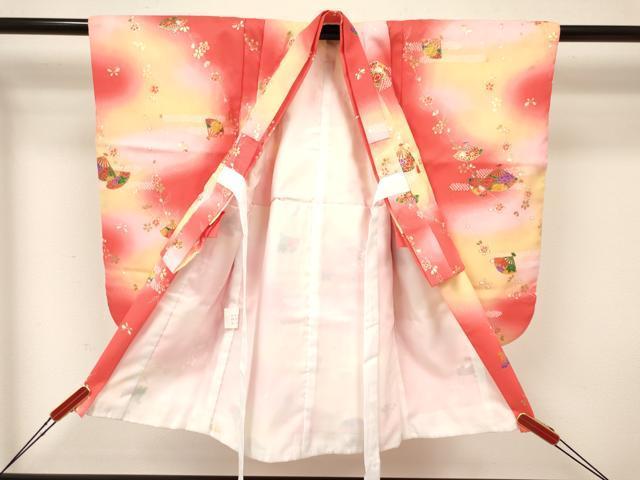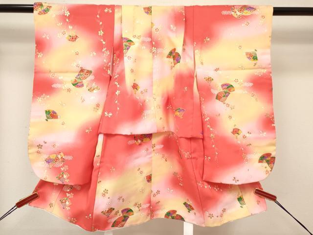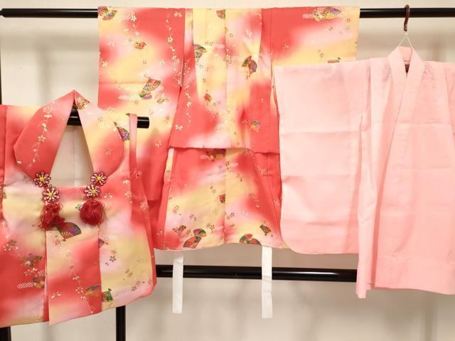 平和屋着物七五三 女の子 3歳 祝着 三つ身 長襦袢(単衣)・被布セット 扇面花蝶文 暈し染め 金彩 洗える着物 DAAY3011ma