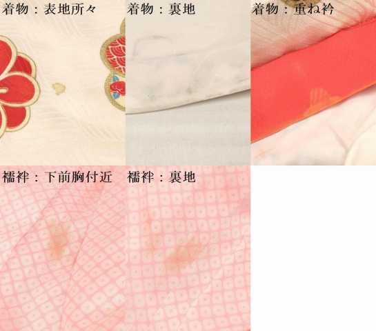 状態は接写画像のように表地所々・裏地・重ね衿に薄い汚れがございます。