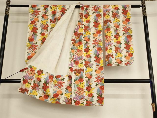 平和屋着物七五三 女の子 3歳 祝着 花蝶間道 金彩 正絹 逸品 AABA1239ja
