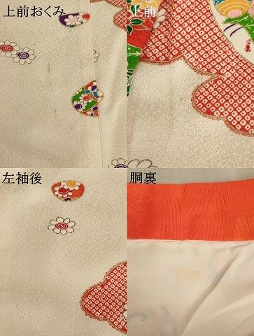 着物【正絹】の状態は接写画像のように上前おくみ・上前・左袖後・胴裏に汚れがございますが