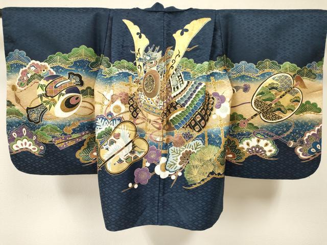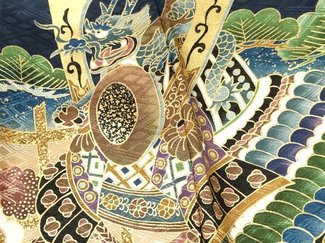 平和屋着物七五三 男の子 祝着・羽織セット 龍 兜 飛鶴松文 暈し染め 金彩 洗える着物 DAAY3151ma