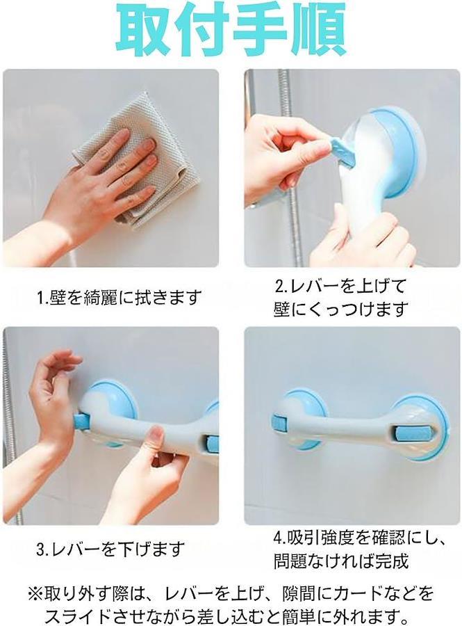 転倒を防止し、立ち座りをサポートするための吸盤式手すりを2個セットです。
