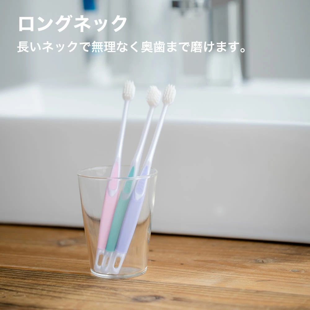抗菌加工+極細毛で清潔にきれいな歯を目指す歯ブラシです。ロングネックとヘッドが超コンパクトなので、奥歯の裏側までスムーズに磨く事ができます。 3本セットなのでお手軽に交換して常に清潔に使う事ができます。