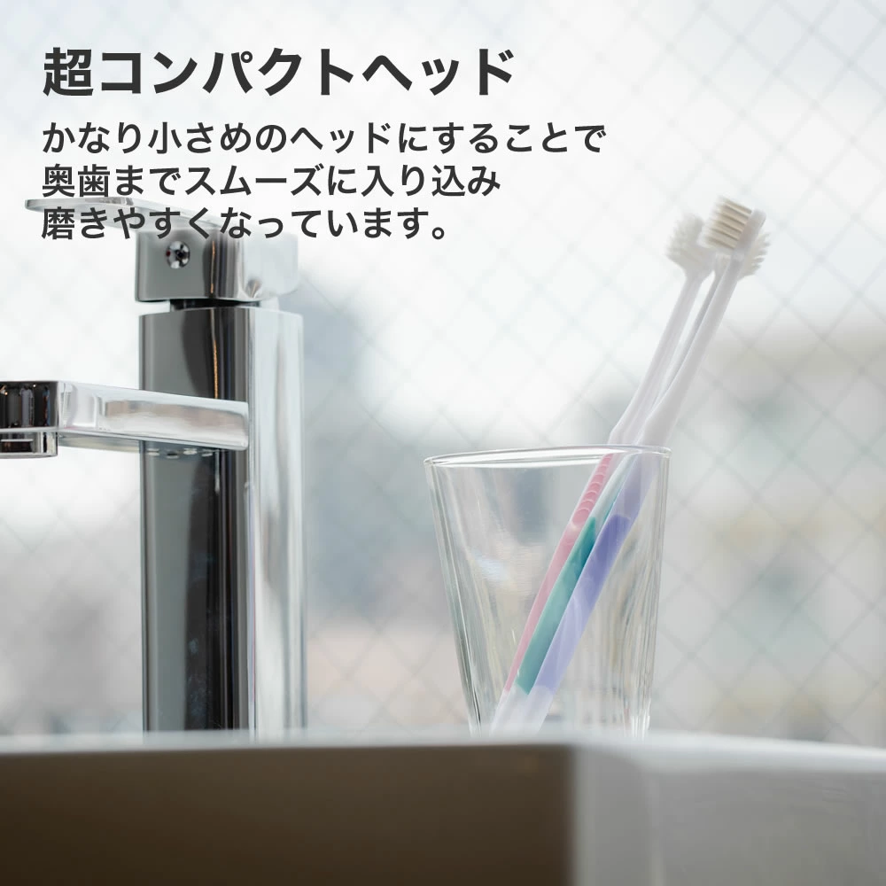 超コンパクトヘッドかなり小さめのヘッドにすることで奥歯までスムーズに入り込み磨きやすくなっています。