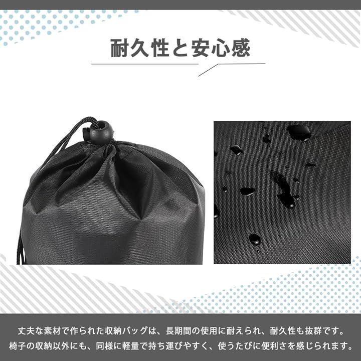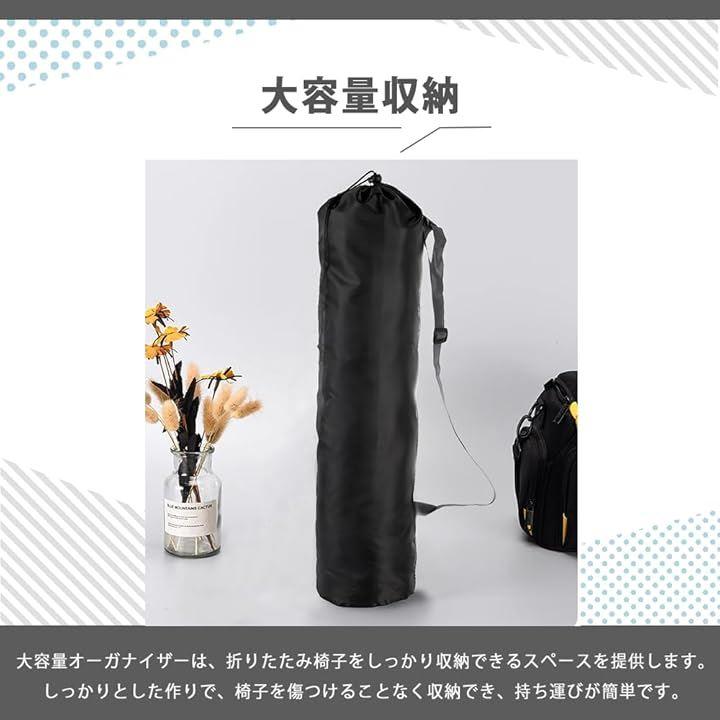 「大容量収納」 大容量オーガナイザーは、折りたたみ椅子をしっかり収納できるスペースを提供します。