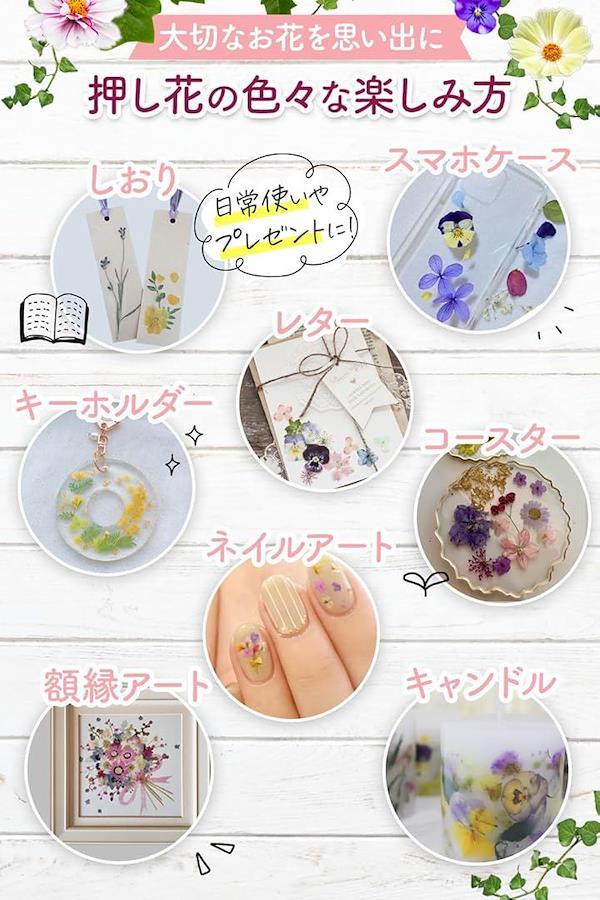 平面的で扱いやすく、スマホケースやしおり、コースター、ネイルなど、幅広いハンドメイドに活用できるのも押し花ならではの楽しみ方です。