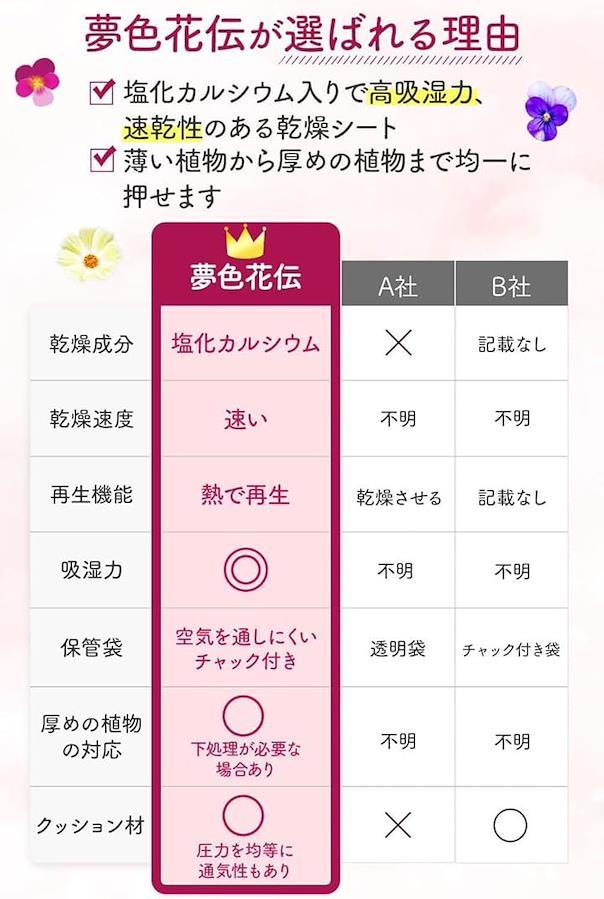 「吸湿能力が高い」塩化カルシウム入りの特殊シートで、植物の水分を素早く抜き取ります。